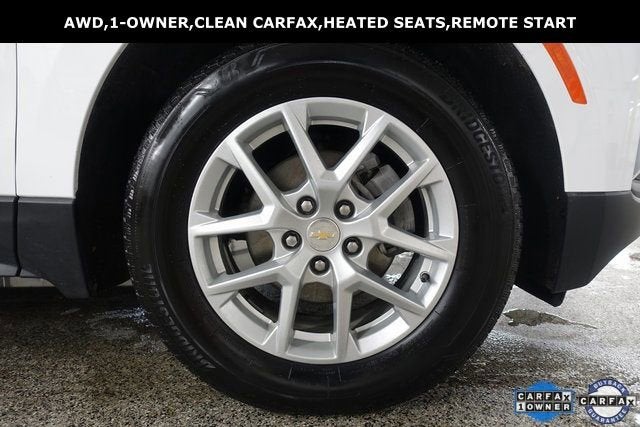 CARFAX One-Owner. Clean CARFAX. Summit White 2023 Chevrolet Equinox LT AWD 6-Speed Automatic Electronic with Overdrive 1.5L DOHC Touch Screen Radio, Remote Start, Power Liftgate, Heated Seats, Bluetooth®, Backup Camera, Steering Wheel Audio Controls, Auxiliary Input Jack and USB Connections, 4G LTE Wi-Fi Hotspot, Automatic Emergency Braking, Forward Collision Warning, Rear Cross Traffic Warning, Apple Carplay, Android Auto, AWD.