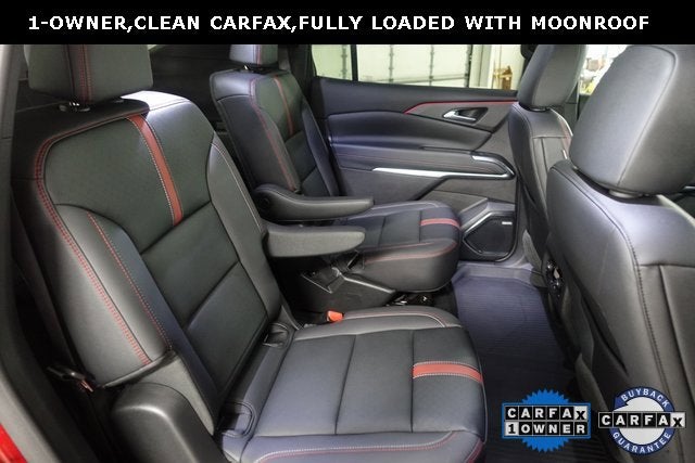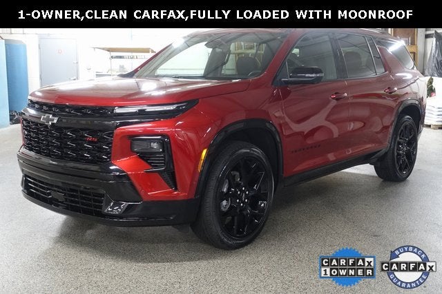CARFAX One-Owner. Clean CARFAX. Radiant Red 2024 Chevrolet Traverse RS AWD 8-Speed Automatic 2.5L DOHC Touch Screen Radio, Remote Start, Power Sunroof, Power Liftgate, Memory Seat, Heated and Cooled Leather Seats, Bose Audio, 3rd Row Seating, Forward Collision Warning, Rear Cross Traffic Warning, Apple Carplay, Android Auto, 360-degree surround-view camera system, AWD.Clean History Report and 1-Owner too! Odometer is 9632 miles below market average!Family owned and operated since 1918 , Lima Cadillac is a quality oriented, full service automotive dealership that prides itself on creating a positive atmosphere for all of our customers and employees based on trust, respect, honesty, and integrity. If at any time you have a question, please do not hesitate to contact a Lima Cadillac professional online or give us a call at 419-993-6000! Please note the advertised price does not include sales tax, vehicle registration fees, other fees required by law, finance charges and any documentation charges. Dealership not responsible for equipment inaccuracies.